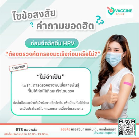 ชวนไขข้อสงสัย “ก่อนฉีดวัคซีน HPV ต้องตรวจคัดกรองมะเร็งก่อนหรือไม่