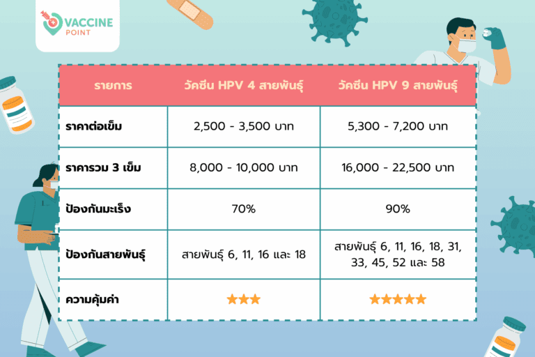 “วัคซีน HPV ราคาเท่าไหร่?” คือคำถามอันดับ 1 ที่ทุกคนสงสัย มาดูตารางเปรียบเทียบกันชัดๆ