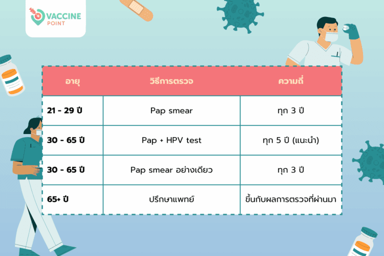 - วัคซีนไม่แทนการตรวจคัดกรอง ต้องตรวจ Pap smear เป็นประจำต่อไป
